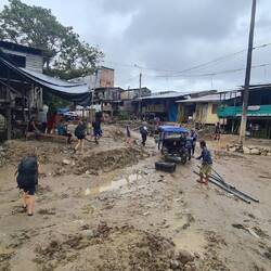 0910-0940 we meet the guy,Jese, don't know how, who the nice people in Iquitos had asked to help us navigate the border. Our phones were not working. He literally showed up where we came back from the passport office, I guess finding 6 gringos, is not so complicated. He says there's a boat today, but we need cash, so we should go to Leticia (Colombia), because there the rates for Brazilian currency are much better (go figure). So I get on the back of his motor bike and we slalom through the traffic to a bank. Cash machines, All 3 not working. OK next bank, one of 2 working but won't take foreign cards ( this is a border town!). So next step is to change $250 cash. That's the fastest step of the day. Black Market doesn't do burocracy.