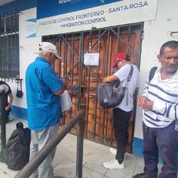 0820 Passport official says we overstayed our 10-day visa by seven days, so that will be 95 soles per person, per day. I almost explode, because 6x7x95= 3,990 soles =US$1,050, and it wasn't our fault we stayed longer, it was the blockades in the South that stopped us leaving, and a normal visa is 90 days. Many others did the calculation, and they heard the same as me.