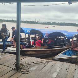 0940-0950 Small long boat from Leticea , Colombia to Tatabanga Brasil. Note there are no border controls on the river, and none on the land either. Smugglers paradise. But for us its sensible to visit the passport controls, otherwise we are likely to have problems with transport, hotels and the airport when leaving.