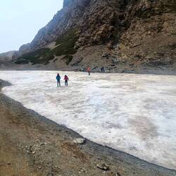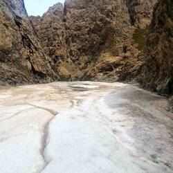 In the afternoon, we went for a short hike (7km) in Yolyn Am, which is a canyon, with a frozen over river. The signs say there are snow leopards, wolves, bearded eagles, and ibex here, and indeed, we did see the latter two. The ibex stood 100m above us on the edge of a straight cliff face, blissfully unaware that one false step would mean certain death. The eagle was flying to teach one of its offspring.