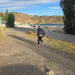 Given that Flo's injury meant that she couldn't hike, I hoped this area where walks are flatter and shorter would be a minor compensation. Yesterday, she made a heroic 5km hopping. The weather wasn't great, but the walk along Simpson River near Coyhaique was still very nice.