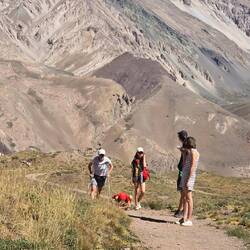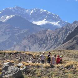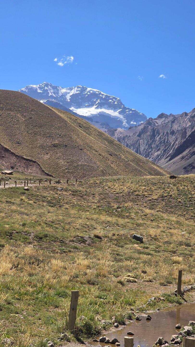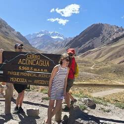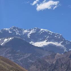 Aconcagua is the highest mountain in the world outside of the Himalayas at 6961m (22841 ft). So of course we went to climb (a bit of) it. The base is a 3 hour drive through stunning valleys. Its a reasonably good road, since its the main transit road between Argentina and Chile. However, that also means that there are a lot of trucks, and they "caused" us an hours delay. You see I was just overtaking two of them, when the police stopped me. "Do you speak Spanish?". We reply a little bit. So he says something about double lines and we pretend not to really understand. He asks for the usual documents and then disappears for 50 minutes. Now you don't need to be a cynic to think this is an attempt to have us go in the office and offer to "pay" in cash. Whatever the case we don't give in. In the end I get a ticket, for crossing a double line. What will it cost? No idea...we will find out later.