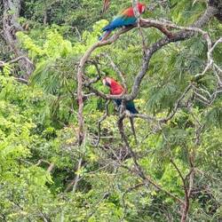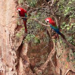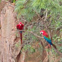 The Buraco is South Americas deepest sinkhole (100m). The walls are home to 60 pairs of Red Green McCaw*. They fly back and forth in pairs or larger groups. The beauty of it has to be seen to be believed. As always, our phone cameras don't really capture the feeling.