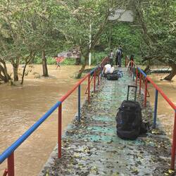 Luckily, a local guy helped carry the two heavier suitcases. He did it in style with them on his head. I doubt we would have made it without him. Also because the flood made the route totally unclear at times.