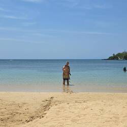... is something my better half often tells other people. Only problem is, that the statement is not true, or at a minimum,  it needs to have a significant qualifying statement. She should say, "Ian doesn't like some beaches, and he tends to hide from the sun on the other ones."