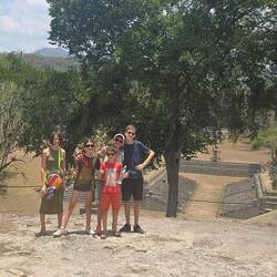 The site is large with several different areas for living, dancing, sports, and, of course religion and religious sacrifice. The kids were particularly interested in the hierarchy of sacrifice. If the gods just needed a little ( to improve the harvest, etc), then animals would be enough. If more was needed, then the losing sports team would get the chop. Still not enough, then the winners would be done for, and ultimately, the king would let his own blood with facial incisions, though he would at least be spared.