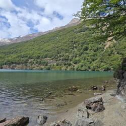 After our epic walk to Fitzroy, we took one day of rest to let the muscle pain subside ( at least that's my reasoning). Then we took our injured Flo to Lago del Desierto for a short walk, or more precisely short hop. The lake is beautifully situated between mountains with large glaciers.