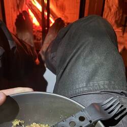Die Nacht war sternenklar und dabei sogar ein wenig frostig. Ich hatte das Gefühl, Besuch zu haben: Dem Geräusch nach war eine Maus in meinem Rucksack; jedes Mal, wenn ich mich bewegt habe, um genauer zuzuhören, war das Geräusch weg. Irgendwann gehe ich mit der Stirnlampe ran und suche den fast leeren Rucksack durch, kann aber nichts finden. Ab diesem Zeitpunkt ist das Geräusch allerdings auch weg oder meine Augen einfach zu fest zu.