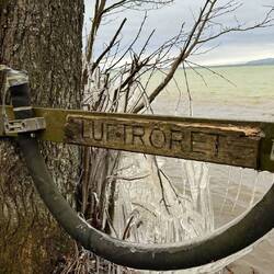 Der See hält für mich einen Riesenfundus an skurrilen Eisskulpturen bereit und der Weg daran entlang, heute mal ein Stück vom Pilgrimsleden, zieht sich teils auf Wasserhöhe, teils aber auch oberhalb der Steilküste entlang. Trotz des trüben Wetters (zwischendurch beginnt es immer mal wieder leicht zu schneien) hat der See, der scheinbar recht flach ist, auffällig schöne unterschiedliche Färbungen.