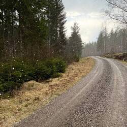 Irgendwann um Mitternacht rum hat es angefangen zu regnen, die ganze Nacht durch dann ziemlich heftig. Zumindest dachte ich das dem Geräusch nach. Am Morgen habe ich rund ums Zelt feinsten Graupel, es hat also getäuscht, es ist der angemeldete Winter zurückgekommen. Die Zeitumstellung habe ich für dieses Jahr irgendwie noch nicht begriffen, deswegen stehe ich nach der neuen Zeit, also recht spät auf und rechne es mir immer wieder schön, dass ich ja am Abend länger laufen kann, komischerweise kürzt sich der errechnete Vorteil am Ende aber immer weg. Dabei wird es fast elf, bis ich heute loskomme. Es ist feinster Schneegriesel in der Luft, am Boden ist aber alles weggetaut. Nach den ersten paar Kilometern entlang der Straße biege ich in einen Wald ab und verpasse dabei schon einen kleinen Waldweg, wie ich dann feststelle, weil er gar nicht sichtbar ist. Hier ist wohl vor zehn Jahren mal ein Pfad gewesen, jetzt sehe ich nur eine Menge junger Bäume und Heidekraut, die lange kein menschliches Antlitz gesehen haben. Umso mehr freuen Sie sich über mich, schütteln sich ordentlich, als ich an ihnen vorbeigehe und so dauert es nicht allzu lange und meine Hose und Schuhe, alles ist nass. Da es völlig unwegsam ist, kombiniere ich die ganze Zeit das Nichts mit meiner Karte und versuche, diesem virtuellen Weg irgendwie zu folgen. Glücklicherweise ist meine Hose mit dem Polarfuchs drauf sehr schnelltrocknend und so ist das alles eine halbe Stunde, nachdem ich wieder auf einem Weg bin, wieder vergessen. Der Weg zieht sich um verschiedene Seen herum und dann später auch durch einige Dörfer. Je länger sich der Tag zieht, desto mehr wird auch der Schnee von oben. Ein paar Bauarbeiter am Weg fragen mich, ob ich sicher bin, bis nach Jönköping zu kommen, dort hatte es wohl heute morgen schon sieben bis acht Zentimeter Schnee. Ich sage Ihnen, dass der Schnee für mich sicher kein Hindernis sein wird. Um die Mittagszeit rum sitze ich in einer Bushaltestelle vor einer Schule, telefoniere ein wenig und gucke zwei Kranichen zu. Es ist heute den ganzen Tag irgendwie eine merkwürdige Atmosphäre, hat wohl was mit dem Schnee zu tun. Es ist der erste Tag auf dieser Tour, an dem ich echten Schnee habe, dementsprechend ist es absolut still rundherum, kein Vogel singt und der Schnee als solches schluckt auch fast alle weiteren Geräusche. Immer, wenn der Weg zwischendurch mal an einer Straße entlang geht, muss ich zusehen, dass mich die riesige Wasserfahne, die speziell die LKWs hinter sich herziehen, nicht völlig durchnässt. Am Nachmittag hält ein Autofahrer kurz an und fragt, ob ich in irgendeiner Form Hilfe brauche: Ich erkläre kurz, dass ich zu Fuß unterwegs bin und alles in Ordnung ist. Nur der Form halber erwähnt er noch, dass er gleich im nächsten Ort wohnt, dann fährt er weiter. Als ich einige Zeit später durch das Dorf gehe, ruft er mir von weitem über die Wiese zu, ob ich Lust hätte, auf eine Fika reinzukommen. Da es beste Kaffeezeit ist, nehme ich an und sitze kurz darauf bei Rasmus und seiner Familie mit am Tisch. Wir essen den Kuchen, den er mit den Kindern zusammen gebacken hat. Es ist eine sehr nette, angenehme Unterhaltung, vielen Dank an Euch fünf für diese Einladung. Nach etwa einer oder anderthalb Stunden ziehe ich weiter, da ich heute gefühlt noch eine Ewigkeit vor mir hab. Es wird im Großen und Ganzen der einzige ernstzunehmende Kontakt für heute bleiben, das ist sicher auch dem Wetter geschuldet. Der Weg zieht sich jetzt noch gut 10km weiter durch den Wald und mangels Sitzmöglichkeiten für eine Pause gehe ich irgendwann zu einem Gehöft. Es wirkt verlassen und da der Hauseingang so zugeräumt ist, dass ich dort nicht mal sitzen kann, gehe ich hinter die riesengroße Scheune, weil ich dort eine offene Tür gesehen habe. Der große Raum, den ich innen vorfinde, ist völlig zugemüllt, in der Hauptsache mit Bierflaschen und allem, was man sich in einem ungeordneten Haushalt vorstellen kann. Für mich zur Pause mit einem Dach über dem Kopf taugt es aber alle Male. Für den Abend habe ich mir eine Siedlung ausgeguckt, an der ich nach einer Unterkunft a la Scheune oder Stall fragen will, da mein Zelt vom Morgen noch komplett nass ist und ich bei dem Schnee natürlich keine Möglichkeit hatte, es irgendwie zu trocknen. An einem Haus circa 40m vom Weg entfernt gehe ich gerade die Einfahrt entlang und sehe vom weiten Licht im Haus, ein Auto vor der Tür und dass die Haustür offen steht. All diese Vorteile verknotet mein Hirn gerade zu einem Lächeln im Gesicht, als aus eben dieser offenen Tür zwei große schwarze Rottweiler laut bellend auf mich zugerannt kommen. Mit einem würde ich es ja ganz sicher aufnehmen können nach der immerwährenden Regel von meinem Vater: Bei offenem Maul bis zum Schwanz durchgreifen und dann auf links drehen. Aber zwei… Ich bleibe still stehen und spreche sie an, in der Hoffnung, dass in Kürze das Herrchen genauso laut schreiend hinterher kommt, um sie zurückzupfeifen. Aber Herrchen schläft gerade, wie er mir später sagt und von daher bin ich froh, dass in diesem Fall doch die andere goldene Regel greift, dass bellende Hunde wohl nicht beißen. Der Besitzer braucht dann bald 10 Minuten, bis er die Hunde tatsächlich wieder zurückgerufen hat, weil gehorchen tun sie kein bisschen. Als ich ihn nach der erwähnten Unterkunft frage, hält er es speziell wegen der Hunde für nicht so gut und schickt mich weiter. Es gäbe in ein paar hundert Metern eine Art altes Museum, in dem um diese Jahreszeit wohl auch niemand da ist. Da er mal zehn Jahre lang in Bremen gelebt hat, stellen wir irgendwann fest, dass er auch deutsch spricht und wir unterhalten uns noch ein wenig, bevor ich mit aufgefülltem Wasservorrat abziehe. Das verheißene Gelände ist mit einem dieser alten schönen Holzzäune und einem Holztor umgeben. Es ist ein Wohnhaus und zwei sehr alte, recht flache Häuschen, die erstmal wie ein Stall wirken. Sie sind beide zugänglich un