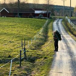 Zum wievielten Mal verliere ich heute meine Uhr, ein Stift aus dem Armband ist diesmal ganz weg, ich packe sie jetzt ein und werde dieses Armband nicht noch einmal reparieren lassen. Am frühen Nachmittag kreuze ich die Autobahn E18, später treffe ich Björn am Wegesrand. Seine Hunde machen ziemlich Radau, als ich am Zaun entlang gehe und einen der beiden sehe ich im Geiste auch schon auf meiner Seite des Zauns. Wir unterhalten uns eine Weile, er ist auch viel auf den hiesigen Wanderpfaden unterwegs.