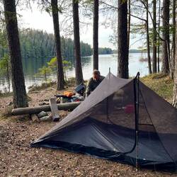 Als ich ankomme, schwimme ich erst mal gleich eine Runde. Es ist herrlich hier im Wasser. Später mache ich was zum Essen und baue mein Innenzelt erst im Shelter auf, später frage ich mich, wozu eigentlich. Das Wetter ist perfekt. Es ist viel schöner draußen, wo ich den fast schon vollen Mond wahrnehmen kann und so ziehe ich noch mal ein paar Meter um und habe eine gute Nacht. Übrigens auf einer jetzt wieder intakten Isomatte, ich hatte aus dem ICA-Markt Sekundenkleber mitgenommen und damit das Loch flicken können.Read more