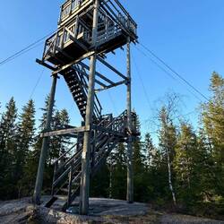 Vom Turm aus haben wir einen prächtigen Rundblick von Westen über das Dalarna-Fjäll und die Seen vor Kopparberg im Norden bis nach Osten. An einem kleinen See ganz in der Nähe streift gerade ein Fuchs vom Wasser zurück ins Dickicht. Verenas Fernglas, im Vergleich zu meinem wirkt es erstmal eher wie ein Opernglas, tut für seine Größe erstaunlich gute Dienste. Ich darf es für den weiteren Weg behalten.