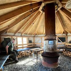 Als ich den Shelter erreiche, fühle ich mich ziemlich ermattet und bemühe erst mal meinen Kocher, mir ein ordentliches Essen anzurichten. Es gibt neben dem Shelter hier noch zwei geschlossene, sehr ordentliche Hütten, die auch für Übernachtungen geeignet sind. Eine davon ist sogar mit einer Notfall-Pulka ausgerüstet. Diese Art von Schlitten, die man bei Winterwanderungen hinter sich her zieht, um die Ausrüstung zu transportieren. Natürlich geht das auch für jemanden, der verletzt ist. Ich lege mich erstmal in eine der Hütten und schlafe eine gute Stunde.