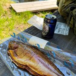 Später kreuzt der Weg die Fernstraße A50, genau an dieser Stelle ist ein kleiner Rastplatz, an dem Eis und derlei Köstlichkeiten verkauft werden. Ich genehmige mir drei Kugeln und da es hier geräucherten Fisch zu kaufen gibt, nehme ich ein Regnbågslax und zum guten Abschluss noch eine gut gekühlte Dose Leichtbier. Das Eis vernasche ich natürlich sofort. Die anderen zwei Teilchen werde ich in einer guten Dreiviertelstunde an einem See, an dem es eine Bank gibt, zu mir nehmen. Ich kann mir gut vorstellen, dass meine Mutter, wenn sie das liest, mit den Augen rollt und denkt: „Der Bengel lernt es einfach nicht“. Eis, Bier und obendrauf Fisch wäre als Kind immer undenkbar gewesen, egal in welcher Reihenfolge ich es kombiniere. Nur mache ich das ja jetzt nicht zum Spaß: das Eis wegen der Hitze, das Bier gegen die Mücken und der Fisch wegen Omega drei ;)