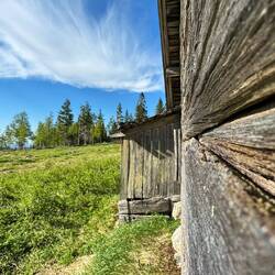 Um kurz nach sechs passiere ich wieder ein altes Gehöft, es ist Ljusbodarna, ich sehe mich fasziniert um und mache ein paar Fotos. Dabei nehme ich wahr, dass eins der alten Bauernhäuser für Wanderer zum Übernachten zur Verfügung steht. Eigentlich habe ich noch 5 km bis zum nächsten See geplant, aber das lasse ich mir nicht nehmen, in diesem wunderschönen original erhaltenen alten Sennerhaus zu übernachten. Zur Bodarna gehören Wohnhaus, Viehstall, Getreidescheune, Pferdestall, Speicher und Heuschuppen. In einem der Häuser gegenüber spreche ich mit einer Frau, sie betreibt hier mit einigen anderen Leuten zusammen im Sommer Landwirtschaft auf die alte Art, sie halten Kühe auf einigen Weiden hier herum und für den Winter wird auf anderen Weiden Heu gemacht.
