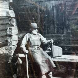 Wir sind noch gar nicht soweit gelaufen, da kommen wir an einer kleinen Hütte vorbei, die nach den ganzen Schildern außendran nach einer Motorrad-Schrauberbude aussieht. Und wie wir uns gerade noch mal umdrehen, kommt auch schon Hans Andersson direkt heraus und wir sind im Gespräch. Er schraubt hier nach eigenem Gusto Motorräder und Autos zusammen, schiebt gleich erst mal seine Harley-Davidson heraus, ein Eigenbau aus verschiedensten Komponenten. Das einzig originale, das dem Moped den Namen gibt, ist der Motor. Und stolz fährt er auch sofort den alten Pick-up raus, der auf einem Volvo-Rahmen aufgebaut ist, so dass wir ihn genau bewundern können. Er hat keine Ahnung von all diesen Sachen, deshalb macht er sie, ist seine herrliche Lebenseinstellung. Und tatsächlich ist toll, was er hier zusammenbastelt. Er als Typ in seiner Art ist auch ein Sondermodell, das merkt man sofort, ohne ein langes Gespräch geführt zu haben. Niemand wandert hier einfach vorbei, ohne mit ihm gesprochen zu haben, das glaube ich ihm gern. Wir unterhalten uns noch ein wenig und ziehen dann weiter.