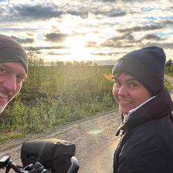 Da kam ja doch so einiges mit den dunklen Wolkenpaketen dahergezogen. Es hat sich zwar nicht so unwetterartig entladen, wie es erst wirkte, aber heftiger Wind und Regen war schon die ganze Nacht drin. Der Wind ist jetzt lange schon wieder verweht, das nasse Gut hat sich erhalten. Da ich heute früh keine Eile habe, warte ich, versuche mal wieder auszusitzen. Noch‘n Kaffee und einmal rumgedreht, aber es hält sich nass von oben, egal wie rum ich es drehe oder wende. Von hier aus wäre es ein guter Tagesritt bis nach Lannavaara, wo ich sieben Monate lang den Winter zugebracht habe und natürlich noch ein Besuch ansteht. Ich fühle mich schon hier wie in meiner Hood, kenne in der Gegend so viele verschiedene Leute, zum Beispiel den Busfahrer hier aus Karesuando, der mich im Winter einige Male von und nach Kiruna mitgenommen hat. Freundlicherweise hat er mich immer durchgewunken, als wäre ich einer von hier. Und seit ich ihm im Winter abends am Highway bei einer kleinen Reparatur am Bus geholfen habe, sind wir ganz dicke. Sie sind halt entspannt und so war es für mich nicht verwunderlich, eine Geschichte von ihm gehört haben, wie er mehr als zehn Rentiere in dem großen Transportkoffer hinten auf dem Bus transportiert haben soll, natürlich lebendig. Inzwischen habe ich eine Info von Verena: Nach etlichen Wochen an der norwegischen Westküste ist sie auch auf dem Weg nach hier, wir werden uns im Laufe des Tages treffen. Ich hege seit Tagen den Plan, auf den Kuormakka, sozusagen den Hausberg meines Winteraufenthalts hochzusteigen, da es im Winter des tiefen Schnees wegen bei einem Versuch blieb. Es gibt auf halbem Wege nach Lannavaara einen Abzweig in die Esrange-Zone, von dem aus wir gemeinsam auf die gut 700 m hochwandern wollen. Ich habe also nur 40 km vor mir, es schüttet ordentlich und ich breche gegen halb zwölf auf. Geht doch nichts über einen echten Regentag mit den richtigen Klamotten und Rückenwind dazu. Und es fühlt sich wirklich gut an, hier in meiner zweiten Heimat unterwegs zu sein, wo ich mich recht gut auskenne. Habe ich doch schon im März, also während des hier sogenannten Frühlingswinters, schon auf dem Rad meine Kreise bis hier raus gezogen. Auch in Idivuoma, dem einzigen Dorf, durch das ich heute komme und wo ich eine Pause mache, kenne ich ein, zwei Leute. Es macht Spaß, richtig reinzuhauen, weil ich weiß, es steht das Wiedersehen und noch die Wanderung heute Nachmittag an. Und was für eine Freude, als mir auf dem Weg auf einmal meine Homies, wie ich die Gastfamilie immer liebevoll nenne, entgegenkommen und wir für einen kurzen Schwatz am Straßenrand stoppen. So brauche ich schließlich kaum mehr als zweieinhalb Stunden, bis ich auch Fräulein Wundermich wiedersehe, nachdem wir vor anderthalb Monaten seit dem Gryllefjord getrennte Wege gefahren sind. Der Abzweig hier von der E45 führt noch über 50 km nach Järämä, einem der wenigen Sami-Dörfer, die überhaupt Zivilisation in der Esrange darstellen. Dort war ich im Dezember, um mit meiner Gastgeber-Familie zusammen den Sami-Familien bei der Rentierscheide zu helfen. Eine einmalige Erfahrung, stundenlang in Scheinwerferlicht und pulverigem Schnee bei 15° unter Null zwischen Tausenden und Abertausenden von Rentieren dieselben bei den Hörnern zu packen und in die entsprechenden Verschläge der Familien zu schaffen, nachdem die Sami sie aus der großen rennenden Menge heraus an den Ohrmarkierungen erkannt und mit dem Lasso gefangen hatten. Alle vom Kleinkind bis zu den Ältesten waren dort und haben ihre Erfahrungen und Traditionen weitergegeben. Im Laufe des späten Nachmittags lichtet sich der Himmel heute und der Regen hört auf. Da nicht mehr so unendlich viel Zeit am Tag dran ist, entscheiden wir uns, nicht mit dem Zelt über Nacht dort oben zu bleiben, sondern heute stattdessen hier im Camper einen Kuchen zu backen und morgen recht früh die Wanderung als Tagesmarsch zu machen. Immerhin wird in den kommenden Tagen etwas mehr Programm sein, so dass wir uns die Zeiten etwas einteilen müssen. In der schönen Sonnenuntergangsstimmung ist aber alle Male noch so viel Zeit, die Räder auszupacken und einige Kilometer auf der Gravelroad Richtung Westen in diese unglaublich große, unbewohnte Raketentestzone zu fahren und die Ruhe und Abgeschiedenheit zu genießen.Read more