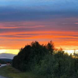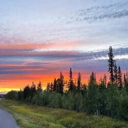 Es ist Tag des Abschieds und meines persönlichen Ehrgeizes. Ich will heute die gut 130 km nach Kiruna auf dem Rad machen, um selbst aus eigener Kraft bis zu dem Ort zurückzukehren und die Tour dort zu beenden, von wo aus im letzten Oktober eine so schöne Zeit begonnen hat. Vorher stehen aber noch ein paar Punkte rund ums Dorf auf meinem Plan, die ich noch einmal aufsuchen möchte. Also breche ich nach dem Frühstück gegen zehn in leichtem Regen auf, im Kaufmannsladen noch ein paar Sachen zu besorgen und dann noch einmal runter an den Fluss und die paar Kilometer rüber bis zum See Ylinen Ahvenjärvi zu fahren. In der Zwischenzeit hat mir Carina, eine ganz liebe Bekannte einer Sami-Familie geschrieben, dass ich sie doch gern noch mal besuchen kommen soll. Das mache ich mit Verena zusammen um die Mittagszeit, gleichwohl ich gegen elf, spätestens aber um zwölf eigentlich mit dem Rad starten wollte. Es ist ein herzliches Wiedersehen auch mit ihrer Mutter und zwei ihrer Kinder. Als Dank für die Mithilfe im Winter bei den Rentieren gibt sie uns noch ein gutes Stück getrocknetes Rentierfleisch und das traditionelle Gáhkku-Brot sowie ein paar gefrorene Fische mit. Ich bin ziemlich sprachlos und angesichts der Tatsache, dass wir die Fische nicht lange aufbewahren und wohl im Camper zubereiten müssen, entscheiden wir uns stattdessen für das Anbraten in Lannavaara in der Küche. Diese ordentliche Portion Seesaibling ist wie der Paukenschlag am Ende des Konzerts hier. Gegen halb vier breche ich dann tatsächlich auf, heute wieder ohne Packtaschen, nur mit dem nötigsten Proviant ausgerüstet, um innert fünf, sechs oder sieben Stunden dem morgigen Spektakel entgegenzufahren. Der Regen hatte schon vor dem Mittag aufgehört, es sind also gute Voraussetzungen zum Fahren, wenn ich von dem recht böigen Gegenwind mal absehe. Aber ich habe es ja selbst gewollt. Aus dem Dorf heraus halte ich noch mal kurz am Fluss, wo die kleine Autofähre übersetzt und auf dem ich zuletzt Ende April bei -13° in der Frühe zu Fuß einige Kilometer unterwegs war. Nach guten 10 km erreiche ich in Nedre Soppero die E 45, die mich jetzt Richtung Süden als nächstes nach Vittangi führt. Ich begegne im Gegenverkehr zum vorerst letzten Mal dem Bus, der täglich einmal die Strecke Karesuando-Kiruna und zurück fährt. Wolken und Lichtverhältnisse sind wunderschön, wenn nur nicht der Wind so gegen mich wäre. Aber immerhin fährt es sich mit dem nackten zappeligen Fahrrad trotzdem viel schneller, als wäre ich jetzt in der Art rollende Schrankwand unterwegs wie sonst üblich. Gegen sechs habe ich Vittangi durchfahren und es ist wohl Zufall, dass mich ziemlich genau auf halbem Weg Verena überholt und an einer kleinen Parkbucht einen Boxenstop mit Kaffee und Kuchen anbietet. Dann geht es weiter Richtung Svappavaara, ein Ort ebenfalls mit einer Mine, den ich gegen acht erreiche. Auf der Straße hier begegnen mir sehr viele der 90-Tonnen-LKWs, die für diese Grube fahren. Bei einer Pause vor dem inzwischen verschlossenen Supermarkt regnet es ein paar Tropfen, für mich kein Grund zur Panik, denn der Himmel insgesamt sieht weiterhin wunderbar aus, vom Wind möchte ich nicht weiter sprechen. Da ich hier von der E45 Richtung Nordwesten auf die E10 abbiege, habe ich seit um halb neun den Sonnenuntergang mit seinen unglaublichen Farben die ganze Zeit vor mir. Ablenken davon tut mich lediglich über einige Kilometer, dass die Straße mit Leitplanken beziehungsweise den hier oft gebräuchlichen Stahlseilen zu beiden Seiten sehr eng begrenzt ist und ich kaum Möglichkeiten habe, den fließenden Verkehr an mir vorbeirollen zu lassen. Teils nur mit 15-20 km/h bin ich damit natürlich auf einer Europastraße ein gewisses Hindernis für die anderen. Aber Experimente mit LKW und Fahrrad nebeneinander auf Haaresbreite lasse ich nicht zu. Nachdem diese herausfordernden Kilometer geschafft sind, fährt es sich wieder deutlich entspannter und ich kann mich voll und ganz dem Licht und etwas klassischer Musik im Ohr hingeben. Dabei wird es mit fortschreitendem Abend auch immer kälter, die Temperaturen sind inzwischen auf 7° runter und ich denke zumindest darüber nach, die Hände in ein paar Handschuhe zu verstecken, was ich aber dank einer späteren Erwärmung auf 8° kurz vor Jukkasjärvi dann doch lasse. Angesichts einer wahrscheinlich überfüllten Stadt Kiruna zwecks des anstehenden Kirchenumzugs morgen früh habe ich mit Verena einen Platz etwas außerhalb vereinbart, wo ich irgendwann nach um zehn ankomme und ziemlich erschöpft bin. Aber auch gleichzeitig froh darüber, jetzt nicht mehr das Zelt aufstellen zu müssen, sondern mich direkt ins Bett zu legen.Read more