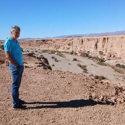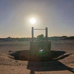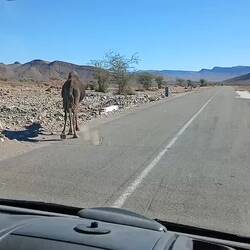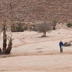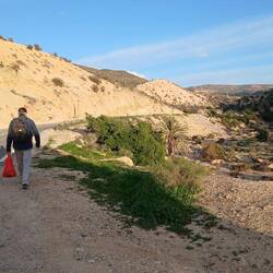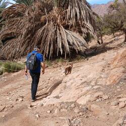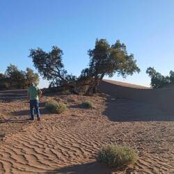 Der Spaziergang war so etwas wie eine kleine Bildungstour, zunächst Blick auf den Boden und dann entweder zur Fauna-Flora App oder zur KI. Spuren von Scarabäus und Echsen, Behausungen der Wüstenspringmaus und Schlangen, die üblichen Akazien und nur alle Jahre nach ordentlich Regen wachsende "Vampir der Wüste", zu deutsch Wüstenhyazinthe.