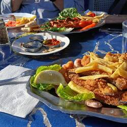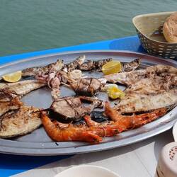 Auf unserer Suche nach einer eventuellen Überwinterungswohnung liefen wir zum Viertel Talbourjt, das zu den belebtereren gehören soll, zumindest am Abend. Dort haben wir im Restaurant Ibtissam gut und günstig gegessen, gemischter Fisch- und gemischter Fleischteller für je 7 Euro.