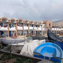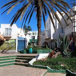 Gleich nachdem wir aus dem Bus ausgestiegen waren, wurden wir auf Deutsch angesprochen, ob wir eine Unterkunft suchen. Mit dem freundlichen Mann kamen wir dann auch ins Gespräch. Er könne uns viele Ferienwohnungen anbieten. Urlaub in einer Ferienwohnung sei auf jeden Fall günstiger als mit dem Wohnmobil, womit er sicher recht hat. Und weil der gute Mann wohl auch ein ehrlicher ist, riet er uns lieber in Aourir eine Wohnung zu suchen. Die seien bedeutend billiger, das Dorf bedeutend ruhiger und wenn man in den Trubel wolle, ab in den Bus und entweder nach Agadir oder in die andere Richtung. Auch gab er uns eine Adresse von einem Bekannten in Aourir, den wir mal fragen sollen.