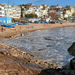 Heute sind wir wie vorgesehen von Aourir aus in die andere Richtung nach Taghazout. Ab der Ortsmitte wieder mit dem Bus zum gleichen Preis wie gestern.