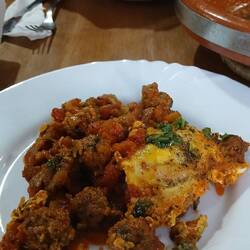 Morgen wollen wir weiter in den Süden und dann werden wir unterwegs einen neuen Regler besorgen. Heute nur noch alles ordentlich eingeräumt und im kleinen Restaurant Tajine mit Kefta verspeist.