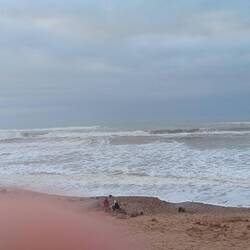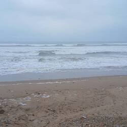 Gegen Mittag sind wir nach einer Runde Boule, unterstützt von einem Kätzchen, vom Campingplatz in den etwa 5 Kilometer entfernten Ortskern los gewandert. Zunächst einen Kaffee getrunken und dann zum Strand marschiert, an dem vermutlich wegen des starken Windes nicht viel los war. Den Surfern war der Wind wohl zu stark, jedenfalls waren keine da.