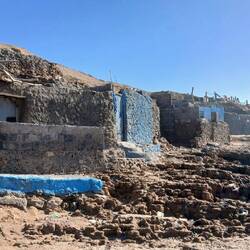 Die letzten Tage verbrachten wir auf dem Campingplatz Aglou Plage. Ein angenehmer Platz mit allem was man so braucht. Wir machten einige Wanderungen, unter anderem zu vor Jahren im Sturm zerstörten Wohnungen, von denen einige noch rudimentär stehen, aber die in den Fels ragenden Teile gelegentlich noch bewohnt sind, bzw. als Lager genutzt werden.