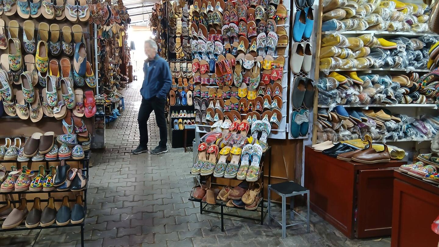 In die andere Richtung und zum uns seit drei Jahren bekannten Schuhmacher, der sich vorgeblich freute, uns wiederzusehen und dem wir zwei Paar Hausschuhe abkauften.