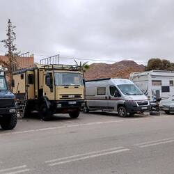 In Aourir gemütlich gefrühstückt, Wasser getankt, Abwasser entleert und über die Hügel wieder nach Agadir. Da wir etwas früh da waren, promenierten wir noch etwas am Strand vorbei und schauten uns die einzelnen Restaurants an. Alle gut gefüllt, ausschließlich mit Touristen. Die Einheimischen halten sich offensichtlich an die Vorschriften des Ramadan.
