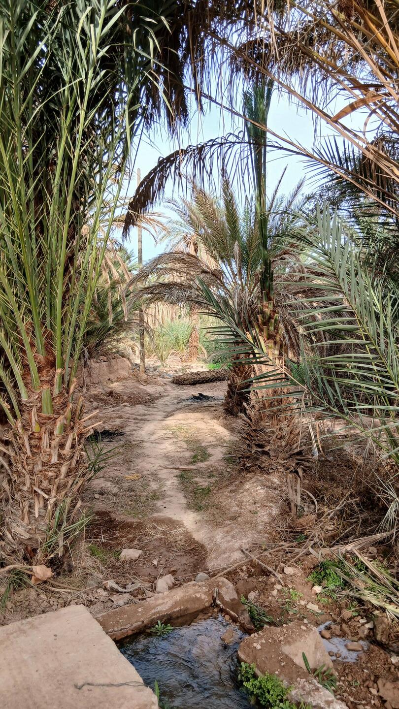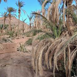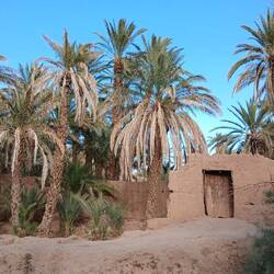 Jetzt sind wir seit zwei Tagen in Tata, Oasenstadt am Rande des Anti Atlas. Gestern wanderten wir vom Campingplatz durch die große Oase, in der noch kleine Wohngebiete inmitten von einer Unmenge von Palmen zu finden sind. Teilweise sind die Douars verlassen und verfallen langsam aber sicher, was ziemlich schnell geht, sind sie doch mit Lehm gebaut. Zwischendrin stehen allerdings noch einige Wohnhäuser, die von ihrer schieren Größe und den modernen Sonnenkollektoren auf nicht ganz so arme Bewohner schließen lassen.