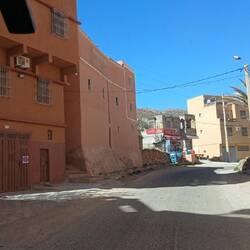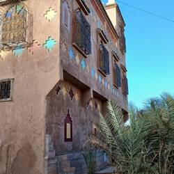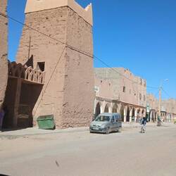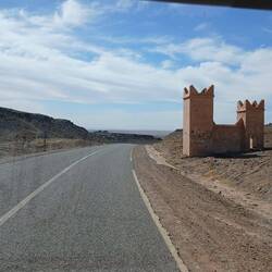 Und dann ging es wie vorgesehen durch das Tal des Draa nach Agdz. Der Fluss Draa entspringt irgendwo im Atlas, wird dann bei Quazazate gestaut. Nach der Schneeschmelze oder nach heftigen Regenfällen führt er Wasser, zumindest bis Zagora, teilweise noch weiter, trocknet aber danach spätestens ab Zagora ganz aus und "fließt" unterirdisch weiter bis zum Atlantik. (auch Hassi&Smara fördern ihr Wasser daraus) Das ganze trockene Tal stellt eigentlich eine einzige große Oase dar, unterbrochen von vielen kleinen Dörfern und zahlreichen verfallenen oder im Verfall befindlichen Ksars und Kashbas. Aber auch hier wachsen die neuen Steinhäuser wie die Pilze aus dem Boden.