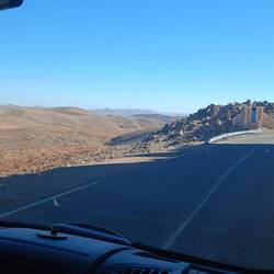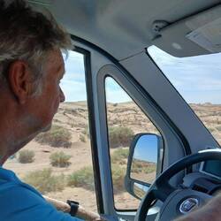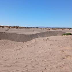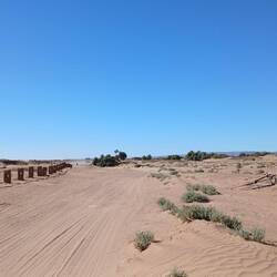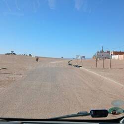 Ersteres liegt zwar unweit der Straße, aber einen direkten Weg dahin gibt es nicht. Einige Kilometer zurück und auf die ausgewiesene Route, keine Straße, eine Schotterpiste. Dieser drei Kilometer gefolgt und dann kam leider eine nicht umfahrbare Sprungschanze. Umfahrbar im Tiefsand eventuell mit 4x4. Mit Müh und Not gedreht und zurück.