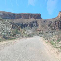 Es ging wieder ordentlich nach oben auf engen, teilweise stark ausgefranste Teerstraße, die sich in engen Kurven durch die Bergwelt windet.