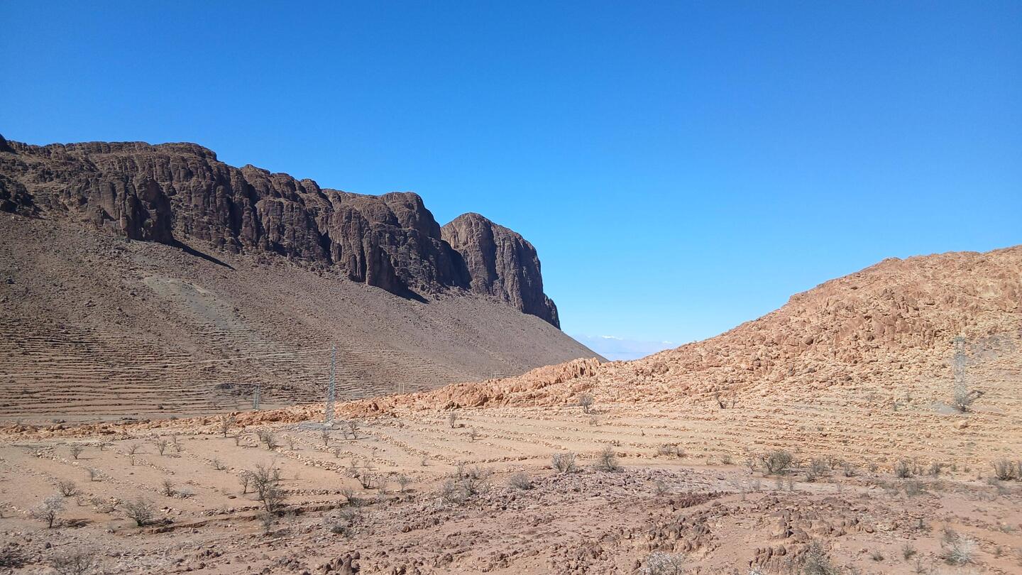 Danach ging es locker weiter, wie gehabt Hochebene, die dann circa 10 Kilometer vor Tafraoute in einem längeren Rutsch auf nunmehr rund 1000 Meter abfiel.