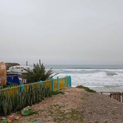 Nicht genug der Surfer, wir haben sie nicht gezählt, aber ab Agadir waren es weit, weit über tausend, stehen wir jetzt auf einem Campingplatz in der nächsten Hochburg Sidi Kaouki. Ebenfalls ein kleines Nest, in dem sich bedeutend mehr Surfgäste aufhalten als es Einwohner gibt.