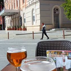 Auch die Kathedrale, die wuchtig zwischen einzelnen Plätzen aufsteigt, sollte sich über einen Besuch erbauen können. Da wir uns aber vom letzten Jahr noch der vielen Kirchen erinnern, setzten wir den geforderten Eintrittspreis von 7 Euro pro Person lieber in Cerveza um, das uns am Platz vor dem Teatro de Romea dann serviert wurde.