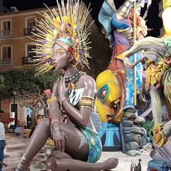 Und plötzlich waren wir mittendrin. Wie wir später eruieren konnten, treffen sich seit Jahrzehnten aus zahlreichen Gemeinden aus der Region Valencia Gruppen, um die "Falla" zu feiern. Vom Säugling im Kinderwagen oder der "Hott" bis zu Oma und Opa ist alles auf der Straße. In bunte Trachten gekleidet und teilweise infernalisch aufspielenden Musikgruppen begleitet, ziehen die einzelnen Gruppen durch die Stadt. Und dies jährlich zwischen dem 17ten und 19ten März. Glück gehabt. Und das bei 26 Grad im Schatten.