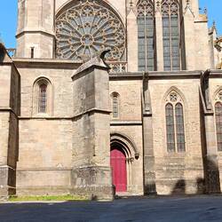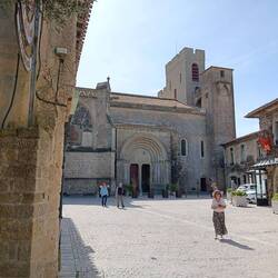 In der Stadt unterhalb des Zentralmassivs parkten wir am Canal du Midi und gingen am Kanal entlang bis zur Überführung des Kanals über den Fluss Orb, dann am Orb vorbei über hundert und mehr Treppen hoch zur im klaren romanischen Stil erbauten Cathédrale-Saint-Nazaire-et-Saint-Celse. Die ursprüngliche Kirche wurde bereits im 8 Jahrhundert erbaut und nach Zerstörung im 12ten un 13ten Jahrhundert größer wieder aufgebaut. Von ihr aus hat man einen herrlichen Blick bis weit ins Tal des Orb.