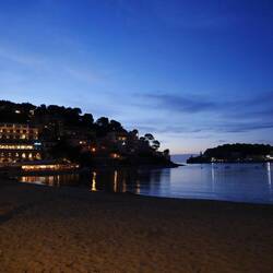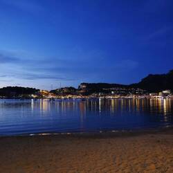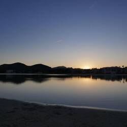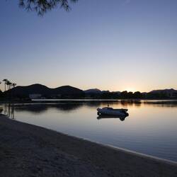 Anschließend sind wir am Strand von Alcúdia entlang gelaufen und haben die ruhige Abendstimmung genossen. Das Wasser war fast ganz ruhig, während die Sonne langsam hinter den Bergen unterging.
