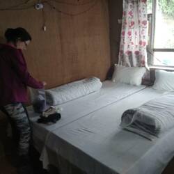 Nachdem wir Doggydog erfolgreich an Eselkarawanen und aggressiven Mutterkühen vorbeigeschleust hatten, kamen wir nach 7 Stunden totaler Wanderzeit in Sherpagaon an. Zwar wäre unser Wanderziel das eine Stunde entfernte Rimche gewesen, aber die verlockenden Gasthäuser, Ines' Muskelkater und meine dahinschwindende Freude am Sherpa-Dasein bewogen uns dann, doch in Sherpagaon unser Lager aufzuschlagen. Wir belohnten uns mit einer heissen Dusche (aka Eimer mit heissem Wasser, den man sich mit einem Becher überschütten konnte) und gehen nun mit müden Beinen ins Bett!Read more