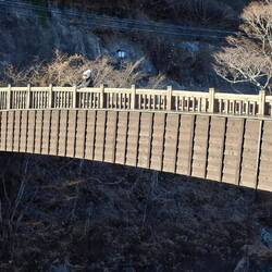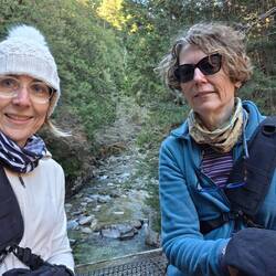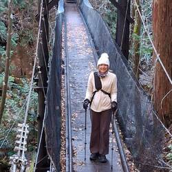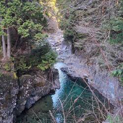 Turns out there was no shuttle bus running to the gorge (out of season, I assume) so we hoofed it the 10 mins to the entrance and then walked along the road that follows the river up the gorge to reach the centre. At that point, there was a track that crossed over the river via a suspension bridge and a path that leads up into the hills. It was a very pleasant walk, albeit I was very glad I had my walking sticks, especially for the down hill return part of the loop. Then we walked all the way back to the onsen again. All up it was a beautiful walk, if not a little bit on the chilly side when the wind caught us.