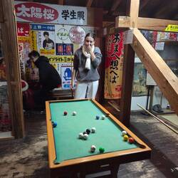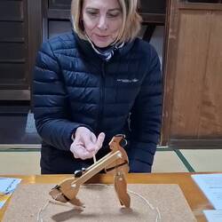 So this is what led us to finding ourselves spending about half an hour in the Nara Karakuri Mechanical Toy Museum, free entry, with a lovely older Japanese lady sitting with us at each table showing us how these old hand made toys worked. We learnt a game similar to Chinese checkers, but actually much more strategic. There was also a game there which was from the Edo period which was suspiciously bey blading! A small donation later and we were on our way.
