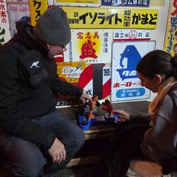Back at the room, the housekeeping staff were setting up our futons for the night, and we had our sushi and cheesecakes for dinner. Craig and I then went for a wander around the hotel to find the hotel shop was amazing! We used the sake tasting machine for six shots of different local sakes and a souvenir cedar sake cup which just so happened to be on Craig's list of souvenirs he wanted. We then hung out in the bar for a while before calling it a night.Read more