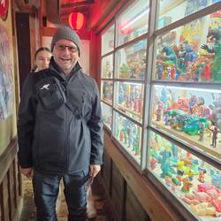 Then we stumbled upon a fabulous mechanical toy museum that had examples of toys that you could actually play with. The lovely lady who was working there showed us how to use the toys and play the games. We even played with an early version of spinning tops like modern Beyblades and I beat Gabby at a different kind of Chinese checkers/ draughts. We had a lot of fun and it was a terrific way to start the day.