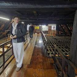 The interior of the castle was amazing! So much timber and really big pieces of lumber. The stairs inside were really steep with small treads, almost like oversized ladders. A few people were tripping or falling throughout, not made any easier by the fact we were all in our socks and the floors are well worn timber so a quite smooth. Outside the castle we came across quite a few warriors dressed up and either posing, or standing around stoically.