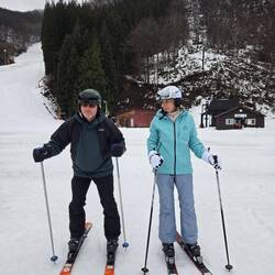 Craig only ended up on his bum once, I lost count of the number of times I ended up on my butt. So at the end of two hours, neither of us can sufficiently stop and can't really turn. Kate met us at the end of the lesson to witness the debacle and we went off for lunch. Once inside and with our jackets off we went from way too hot to quite cold, I suspect that all our nervous energy made us so sweaty that with our jackets off we were evaporatively cooling quite quickly.