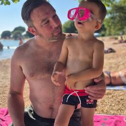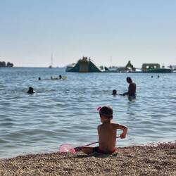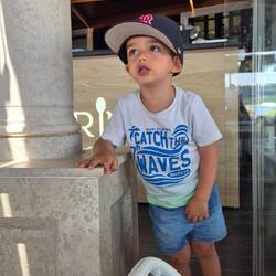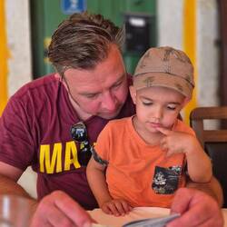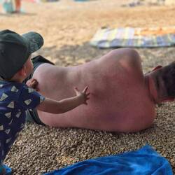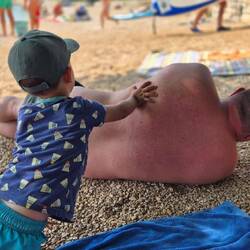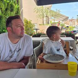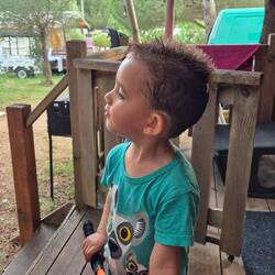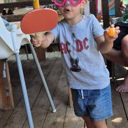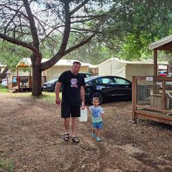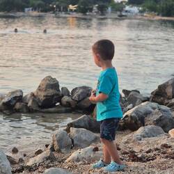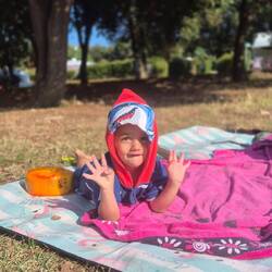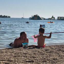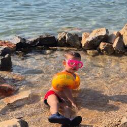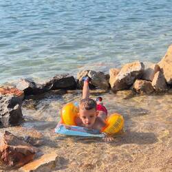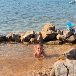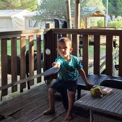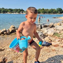 Heute hat Phil schön mit den italienischen Nachbarsjungs gespielt, Verständigung ist kein Problem. Allerdings ging die Freundschaft nur solange bis Phil mit dem Federballschläger ausgeholt hatMeer informatie